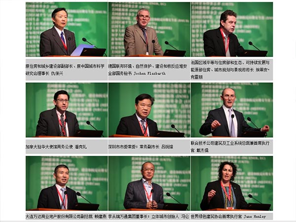 大會(huì)在28日上午九點(diǎn)整準(zhǔn)時(shí)開始,由國(guó)家住房和城鄉(xiāng)建設(shè)部副部長(zhǎng)仇保興主持,貴州省人民政府副省長(zhǎng)慕德貴、加拿大駐華大使商務(wù)公使潘克禮、深圳市常務(wù)副市長(zhǎng)呂銳鋒、聯(lián)合技術(shù)公司建筑及工業(yè)系統(tǒng)總裁兼執(zhí)行官戴杰儒、方興地產(chǎn)(中國(guó))有限公司總經(jīng)理李從瑞向大會(huì)致辭。德國(guó)聯(lián)邦環(huán)境、自然保護(hù)、建設(shè)和核反應(yīng)堆安全部國(guó)務(wù)秘書Jochen Flasbarth;法國(guó)區(qū)域平等與住房部和生態(tài)、可持續(xù)發(fā)展與能源部住房、城市規(guī)劃與景觀司司長(zhǎng)埃蒂安?克雷朋;大連萬(wàn)達(dá)商業(yè)地產(chǎn)股份有限公司副總裁賴建燕;萬(wàn)通投資控股股份有限公司、北京萬(wàn)通立體之城投資有限公司董事長(zhǎng)馮侖;世界綠色建筑協(xié)會(huì)執(zhí)行官Jane Henley出席開幕式,并發(fā)表演講。