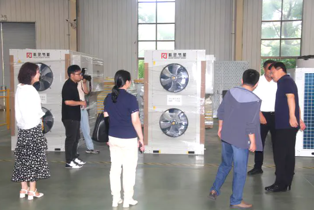 在超低溫變頻空氣源熱泵生產(chǎn)線(xiàn)、地源熱泵生產(chǎn)線(xiàn)、產(chǎn)品性能檢測(cè)中心。葛建民董事長(zhǎng)詳細(xì)講解科靈空氣源熱泵、地源熱泵可以根據(jù)不同的工業(yè)場(chǎng)景,量身定制方案,利用不同技術(shù)和設(shè)計(jì),真正實(shí)現(xiàn)節(jié)能減碳,提高經(jīng)濟(jì)效益。